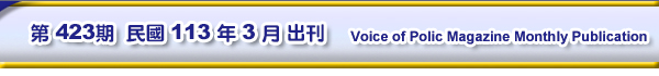 ■ 三、特稿報導 ◎ 風暖心怡總是春/陳為鈞 ◎ 新書介紹:兩岸破冰的先驅-張平沼先生不卑不亢的兩岸交流實錄/陳連禎 ◎ 錢買不到的人間溫暖/耿繼文 ◎ 歡迎各市縣成立讀書或藝文班別/編輯部 ◎ 澳洲見聞:新蓋房屋執行使用燃氣政策/黃裕鐘 ◎ 故意問錯人找氣受?/宥 琳 ◎ 南部橫貫公路西段健走/黃峰亮 ◎ 團協春節聯誼總會團隊參加/蘇景安 ◎ 北市退協會員大會,理事長黃啟澤主持/陳?鳳 ◎ 團拜歌唱美女曹瑞鳳才藝多/劉邦師 ■ 四、捐款芳名錄、版權頁 ◎ 歡迎加入永久會員,繼續踴躍捐助印製費 ◎ 捐款芳名錄 ◎ 警聲稿約、捐款及總會會員繳費方式