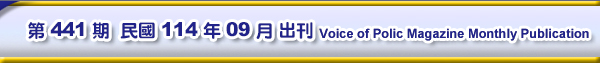 ■ 一、繽紛活動、九月份活動看板 ★ 總會第11屆第10次理監事聯席會議,臨時動議決議將研修會員代表選舉辦法 ★ 關於總會現行會員代表選舉辦法,中華民國退休警察人員協會總會聲明114.8.29 ★ 感謝熱心會員、社會人士贊助,使警聲印製郵寄均順暢 / 劉 ★ 讓我不捨的王爺爺 / 柯繼明 ★ 留別妻 / 耿繼文 ★ 如何游刃有餘? / 陳連禎 ★ 韓信與劉邦的恩怨情仇 / 何姿儀 ★ 勤學書法的蘇玉卿 / 鄭模鉅