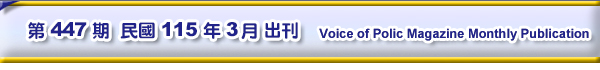 ■ 四、捐款芳名錄、版權頁 ★ 歡迎加入永久會員,繼續踴躍捐助印製費 ★ 捐款芳名錄 ★ 警聲稿約、捐款及總會會員繳費方式 ★ 歡迎以繳年費方式/訂閱警聲月刊雜誌