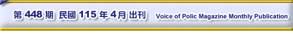■ 四、捐款芳名錄、版權頁 ★ 歡迎加入永久會員,繼續踴躍捐助印製費 ★ 捐款芳名錄 ★ 警聲稿約、捐款及總會會員繳費方式 ★ 歡迎以繳年費方式/訂閱警聲月刊雜誌